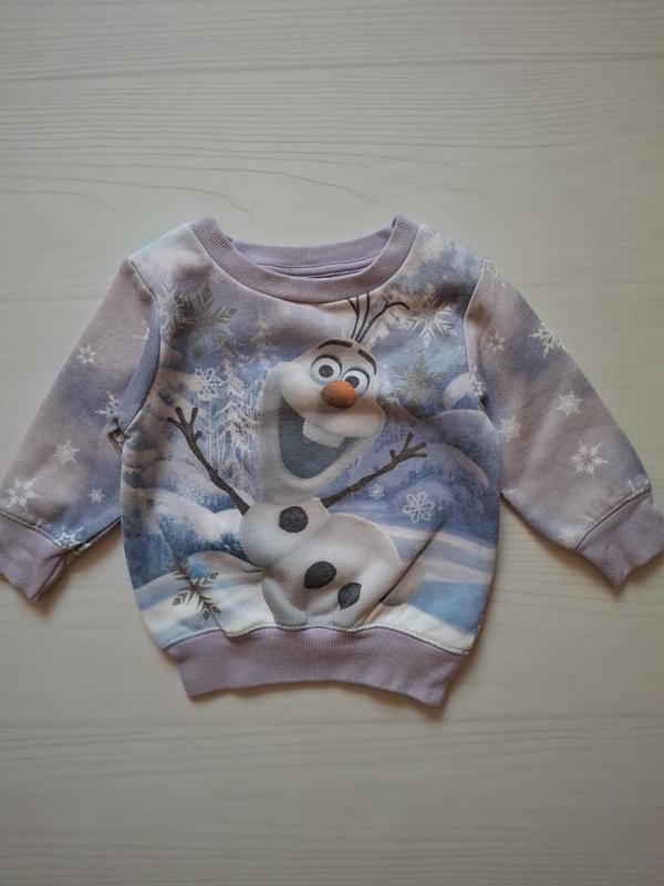 свитшот с Олафом на 6-9 мес, длина 34, ширина 27, рукав с плечом 29