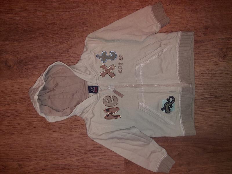 Зручна кофтинка з капюшоном для хлопчика на 12-18 місяців. Застібка- блискавка. Колір - бежевий