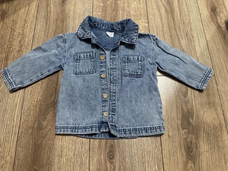 Джинсова сорочка на ґудзиках Розмір 80см,9/12м Універсальна та підходить як дівчинці так хлопчику Модна одягти як основну одежу або під футболку або кофтинку