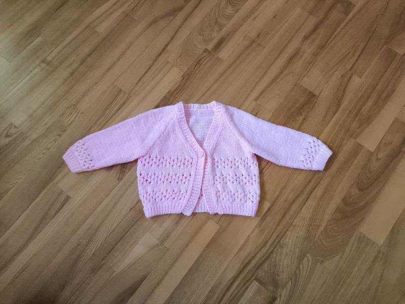 Нова в'язана кофтинка для маленької дівчинки, рожева, з дірочками, тепла. м'яка та приємна. не вживана на зріст ~86-92-96 см/ біля 1 р