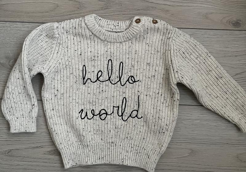 Дитячий светрик крупної вʼязки, що підійде хлопчику та дівчинці. Зручна застібка на ґудзики збоку. Красива вишивка. Теплий та мʼякий светрик. 100% бавовна. По бірцч розмір прописаний 68 см, ми носили до 74 см включно.