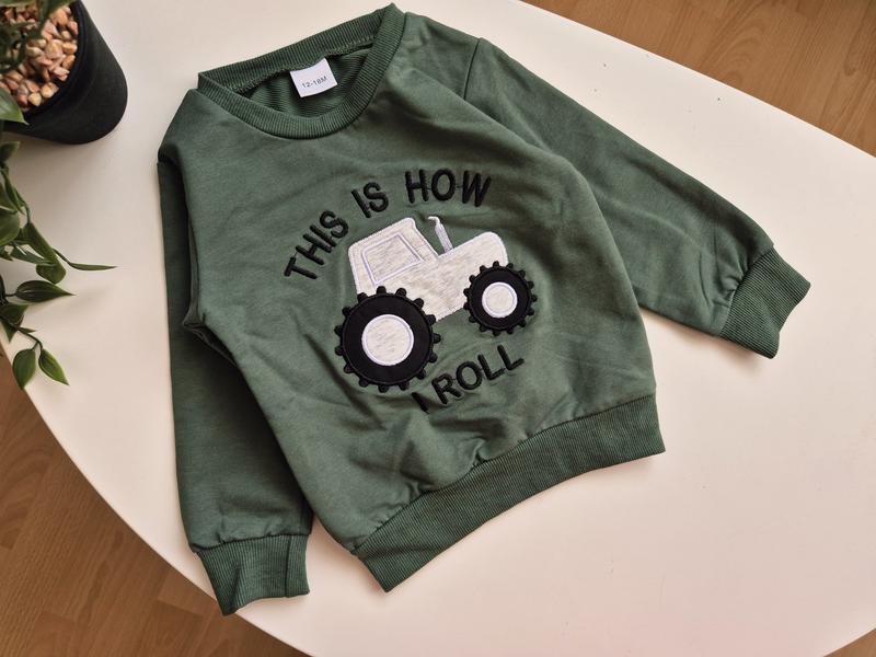 Новий світшот для маленького модника! 🌟 Вік: 12–18 місяців Стан: 100% новий 👕 Склад: ніжний, натуральний котон — комфортний і приємний до шкіри. ✨ Дизайн: стильна аплікація додає яскравості та оригінальності образу. 🎯 Ідеально підходить для щоденних прогулянок, ігор та активного дозвілля. 💖 Даруйте малюку комфорт і стиль у кожному дні!