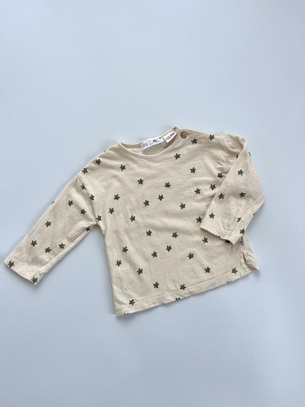 Дитячий реглан від ZARA з милим принтом у зірочки. • Розмір: 68 (3-6 місяців) • Матеріал: 100% бавовна • Колір: бежевий з темними зірочками • Стан: 9/10 - відмінний • М'яка натуральна тканина • Зручний крій для активних малюків Ідеально підходить для повсякденного носіння. Якісна річ від популярного бренду за доступною ціною.