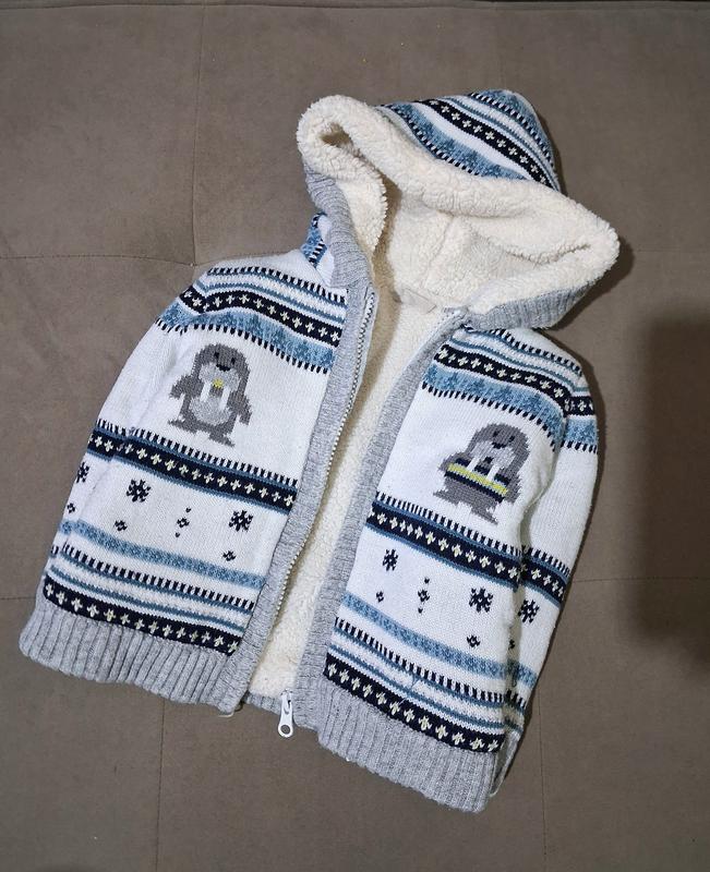 Дуже теплий брендовий кардиган Chicco «Arctic» для хлопчика в ідеальному стані. Повністю утеплений навіть в рукавах. Розмір 80 см, 15 міс. Особливості: виконаний з бавовни з додаванням вовни; тепла підкладка зі штучного хутра; декорований арктичним візерунком; застібається на блискавку; на рукавах і по низу еластичний манжет. Тканина 1: 60% бавовна, 30% поліамід/нейлон, 10% шерсть Підкладка: 100% поліестер Заміри: Довжина 33 Плечі 25 см Рукав 29 см Під руками 30 см