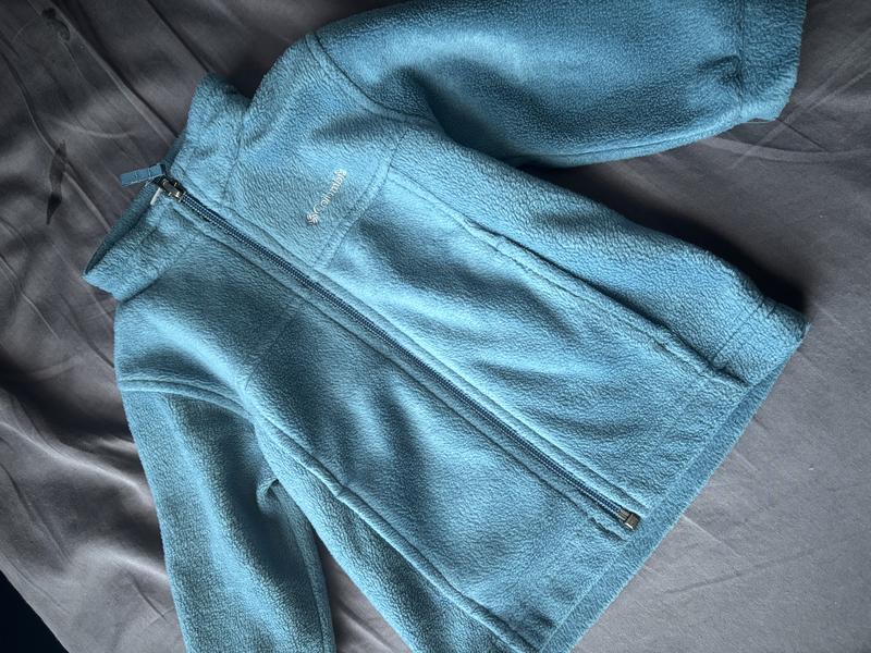 Класна фліска для малечі 12-18 міс з високою горловиною на змійці. Дуже якісна і зручна річ. Фліс майже такий й був ззовні як й при покупці, дуже задоволена якістю. Всередині також мінімальний знос. На фото все видно.