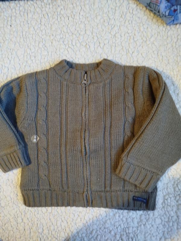 Нова брендова з етикеткою, на бірці 6 міс, але більшомірить заміри: довжина рукава -26 см, довжина по спині-29 см, ширина-29 см, плечі 25 див. Склад: 62 %котон, 38 % акрил