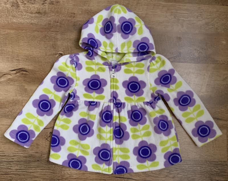 Гарна Тепла Флісова Кофтинка з Капюшоном для дівчинки. Ніжна і в той же час яскраве забарвлення. На засстежке "змійка/блискавка". р. 18-24m. довжина 34-35см., пог 27см., рук.плечей.гв. 31см. В дуже хорошому стані. Оригінал. Купували в Америці.