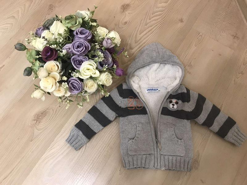 Дуже класна, тепла кофта на хутрі. Можна восени-навесні використовувати замість куртки. Діна кофти 33 см Довжина рукава 30-31 см Плечі 25 див. 95% бавовна, 5% еластан.