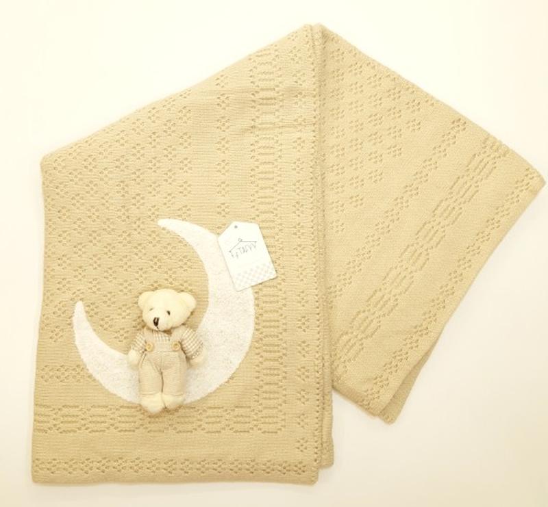Плед 95*80см в'язаний двосторонній бежевий. зірочка. ведмедик.tafyy туреччина 12025-659