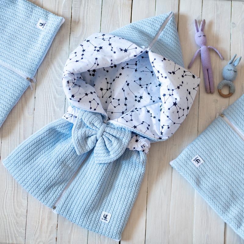 Конверт-трансформер унивесальная вещь: возьмите его на выписку из роддома, на прогулку, или используйте его как пледик. Комфорт и качество всегда будут с вами!