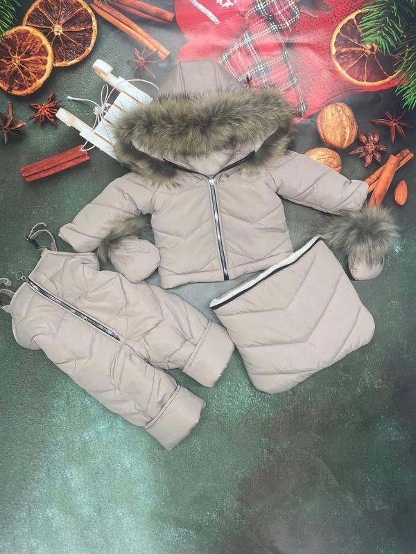 🏷Ціна: 1900грн🏷 ❄️Трійка зима конвертом від 0 до 2 років❄️ Курточка+ комбез до зросту 80-86 см рукавиці в комплекті з натуральним хутром єнот Модель 3ка 🔸️Куртка Верх: лаке, захищає від вітру та снігу! Низ: рукави-підкладка фліс м'який і теплий, куртка-мяка травка. Наповнювач - силіконезоване волокно нового покоління, дуже теплий і легкий (рукави 200+ 200, куртка 150) Капюшон - знімний Узлісся-натуральний єнот, пухнаста. 🔸️Напівкомбінезон: Верх-лаку, захищає від вітру та снігу. Низ-підкладка з м'якого та теплого флісу Наповнювач - силіконізоване волокно 200 покоління дуже теплий і легкий! Бретели на резинці та регулюються на кілька см. На блискавці. По спинці на поясі є резиночка. 🔸️Мішок: Верх – лаку Низ-мяка травка. Наповнювач - силіконезіроване волокно 150 Ця модель розроблена від народження до 2-х років. 📌Спеціальне пошиття рукавів і штанців дає можливість підвернути на 6см. І носити дві зими. Якісна фурнітура та пошиття! А також тканина, наповнювач і всі компоненти комбінезону дають можливість легко прати в машині при 30 градусах. При оформленні замовлення через кнопку Купити повна оплата, обов'язково уточнюйте наявність