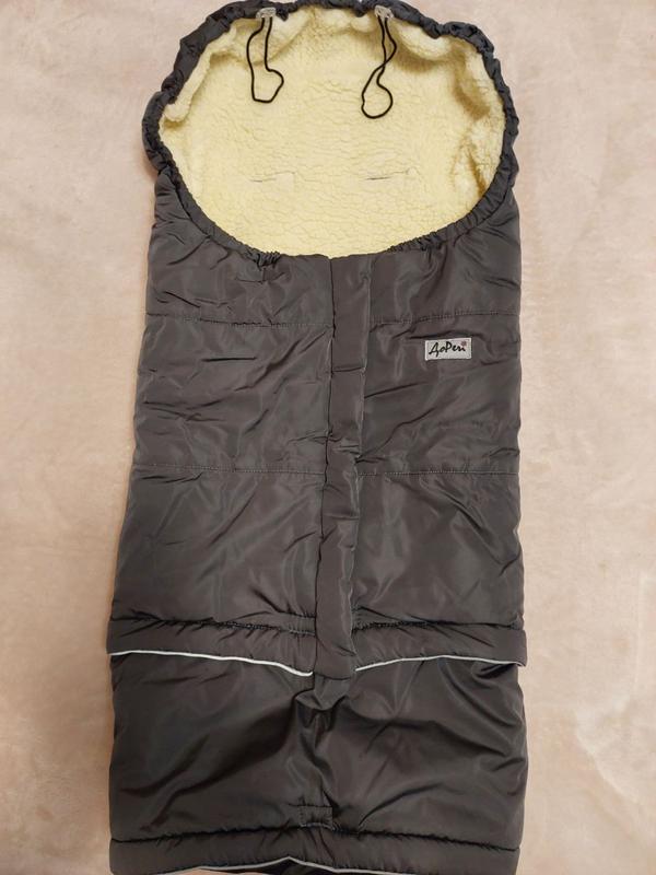 Зимовий конверт на овчині з можливістю збільшення довжини + пристібається чохол на ніжки. колір - графіт. В Києві можливий самовивіз. Чудово підходить для виписки з пологового будинку. Ідеально лягає у люльку. Верх стягується у затишний капюшон. Світловідбивні елементи для безпеки на дорозі у темну частину доби. 7 вертикальних отворів для ременів безпеки, якi пiдходять для більшості візочків. Всередині додаткової частини конверту - у місці контакту з чобітками, є захист від забруднення, який можна просто протерти вологою серветкою. Теплоту овчини компенсують 3 додаткових шари синтепону. Ширина конверту дозволяє вільно рухатися нiжкам у зимових чобітках. Крім цього, додатковими приємними перевагами є: - можливість повного розстібання для використання як ковдри, килимка для ігор чи дорожнього пеленального матрацика; - можливiсть використання у санках. Технічні характеристики: Маленький конверт-85 см. Великий конверт -100 см Стандартна ширина - 45 см. Верх: мембранна тканина з вiтро- та водовідштовхуючим покриттям Утеплювач: Зх шаровий синтепон. Пiдкладка: щiльна овчина на тканiй основ 100% овечої вовни Розрахований: для дітей від 0 місяців до 3х років.
