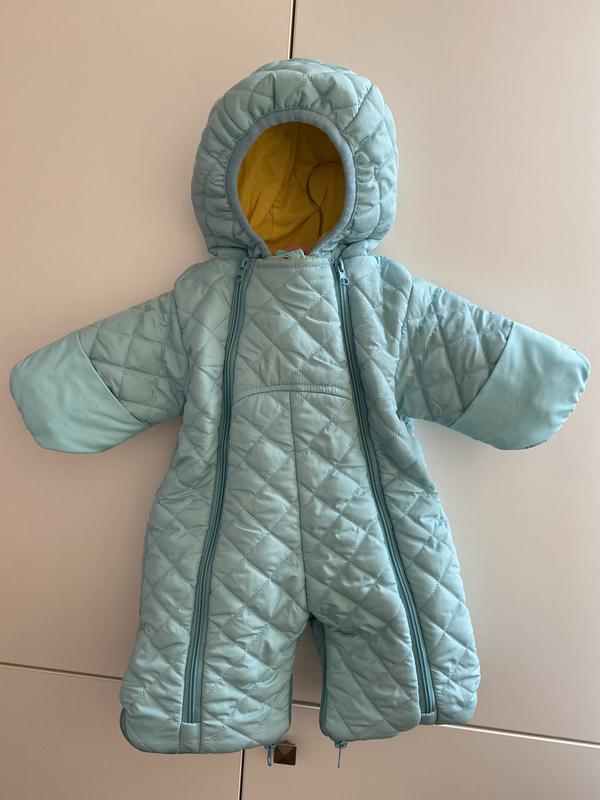 Одягнутий один раз. Комбінезон-трансформер, чудово підійде для хлопчиків та для дівчаток. Верх вітро - та вологозахисна плащівка з витонченим стебнованим візерунком; утеплювач - силіконізований синтепон, 150 г/ м. кв.; підкладка - кулір, 97% бавовни, 3% еластану. Комбінезон має три варіанти для одягання: конверт, закриті ніжки та відкриті ніжки (під черевички). Завдяки цьому здатний прослужити практично рік від самої виписки та до одного рочку.
