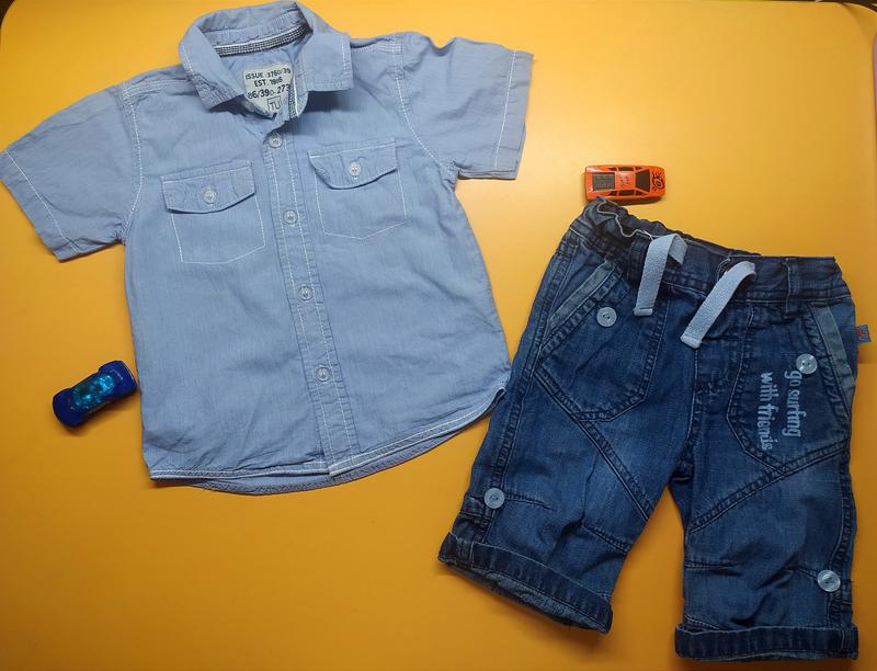 Стильний набір для хлопчика! Речі в чудовому стані! Розмір підійде на рр 80-86 див. Низ ми носили як бриджі.