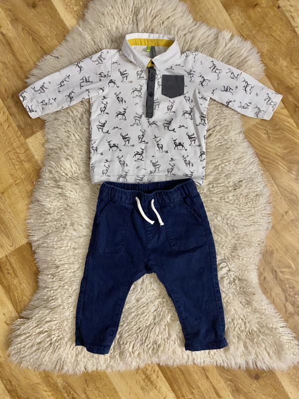 Комплект або родільно. Гарної якості, стан новий. Штани бренду H&M, темно-сині, матеріал кантон. Одягнені раз. 68 см. - 250 грн. Кофта-сорочка, бавовна, м’яка та приємна до тіла. Одягнена раз. розмір 68см - 140 грн. Комплектом -340грн.