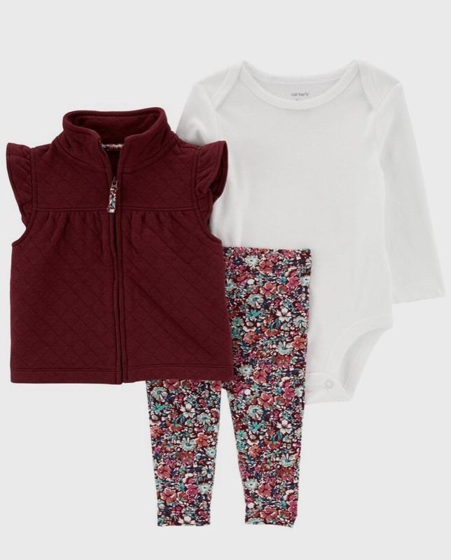 Стильний набір для дівчинки від Carter’s: ✔️ безрукавка ✔️боді на довгий рукав ✔️ бавовняні легінси Розмір: 1,5 - 2 роки За детальними замірами та фото пишіть у приват📩
