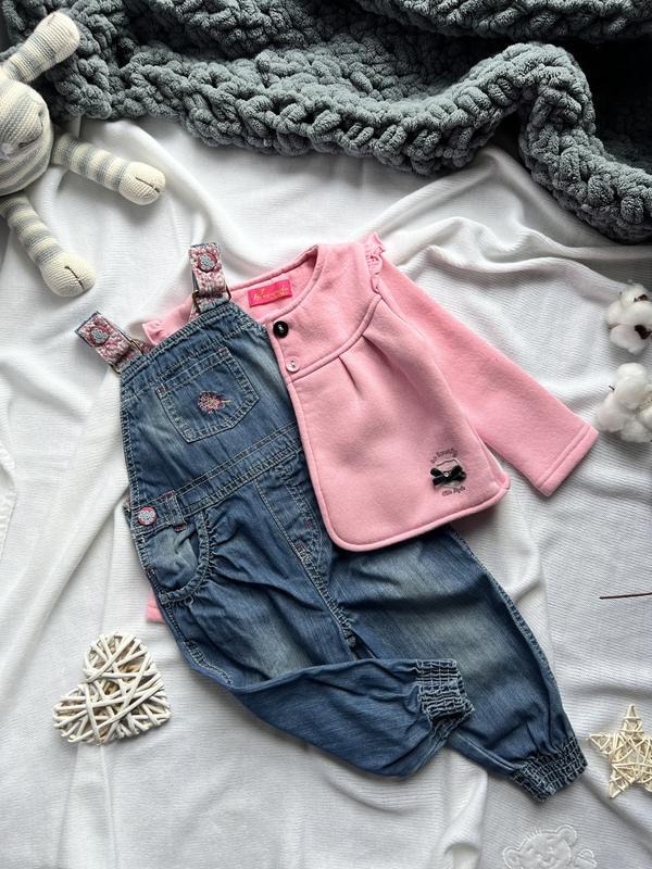 Костюм на дівчинку джинсовий комбінезон жакет кардиган на флісі