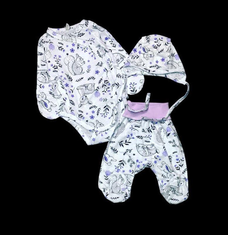 Комплект 3в1 складається із боді, повзунків та шапочки.Чудово підійде в пологовий будинок із перших хвилин народження.Виготовлений із натуральної тканини - кулір (100% бавовна).Малюку в такому комлекті буде комфортно як в маминих обіймах.