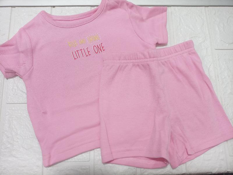 класний хлопковий плотний ,м'який ,ніжнесенький заміри : футболочка : плечі 22 см ,довжина 27 , обхват грудей повний 50 см шорти: довжина 20 см ,резинка 34 см,посадка 16 см