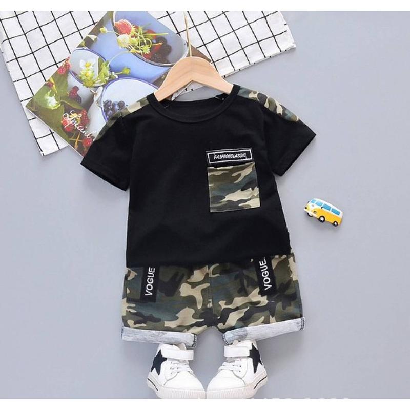 Костюм на літо для хлопчика Vogue чорний верх Матеріал - бавовна 85% Заміри: ===РОЗМІР 80=== ФУТБОЛКА довжина 34 см ширина 29 см ШОРТИ довжина 30 см ===РОЗМІР 90=== ФУТБОЛКА довжина 37 см ширина 29 см ШОРТИ довжина 31 см ===РОЗМІР 100=== ФУТБОЛКА довжина 39 см ширина 31 см ШОРТИ довжина 34 см ===РОЗМІР 110=== ФУТБОЛКА довжина 43 см ширина 32 см ШОРТИ довжина 36 см