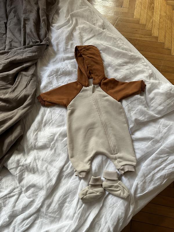Дитячий комбінезон/ромпер з капюшоном Boonyx™- це зручний та стильний MUST HAVE в гардеробі малюка! М'яка, комфортна, гіпоалергена та екологічна тканина ідеальна для чутливої щкіри малюка. Не обмежує рухів, добре зберігає форму при численних праннях. Безпечна блискавка із захисною планкою, яка не торкається шкіри та "не кусає" малюка, неймовірно зручна у використанні для максимально швидкого перевдягання. Сезон: всесезонний; Основний матеріал: футер тринитка без начісу, 80% бавовна, 20% еластан🌿 ▫️ М’якенькі, комфортні та затишні ▫️ Тканина щільна та зносостійка ▫️Стильний сучасний фасон: 👌🏻Можна носити навесні, влітку у прохолодні дні та вечори, восени та взимку в якості піддіви під комбінезон Температурний режим (в якості самостійного одягу) : 16-18+...22-25+ градусів Рекомендації щодо догляду: прання при 30 градусах, делікатний режим прання та віджиму, відбілювання заборонено; Зроблено в Україні. Додатково пінетки купляла 62 розмір Вдягали 4 рази, потім виросла дитина