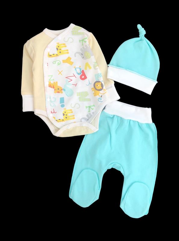 Комплект чудово підійте в пологовий будинок із перших хвилин народження. Виготовлений із натуральної тканини - футер (бавовна з начосом). Шви назовні. Малюку в такому комлекті буде комфортно як в маминих обіймах.