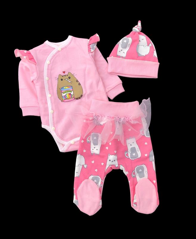 Комплект 3в1: боді з довгим рукавом, повзунки, шапочка "принт", футер тм “happy”