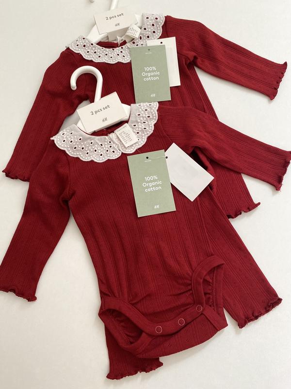 Набір новий з біркою, купляла у Франції в H&M, оригінал. Розмір вказаний 1-2 місяці (56 см). Заміри: боді: довжина 30 см, пог 17 см, тягнеться; лосіни: довжина 30 см, пот 18 см, тягнеться. В житті дуже гарний. Якісний матеріал, натуральна тканина. Ціна по бірці 15.99€. Працюю тільки по 100% передоплаті на мою карту, наложки немає. Відправлення Новою та Укрпоштою. Обміну та повернення немає.