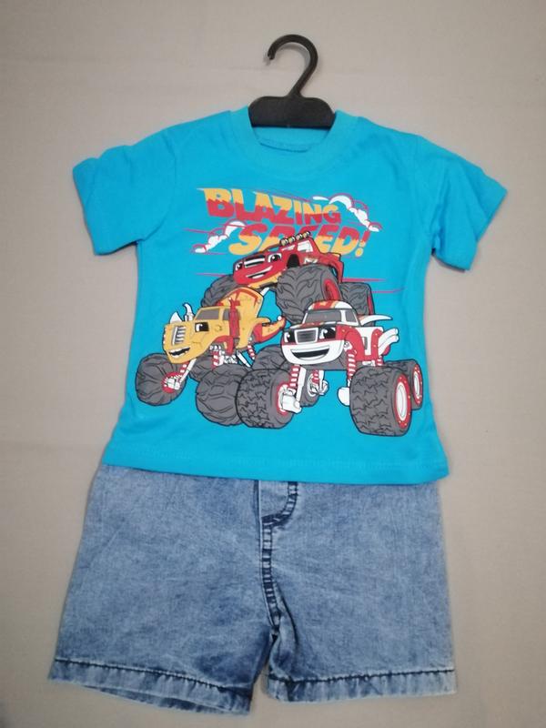 Дитячий костюмчик з джинсовими шортами для хлопчика 1, років 1. Футболка ширина по грудях 27 см, довжина 34 см. Ширина шортів 30 см, довжина 34 см