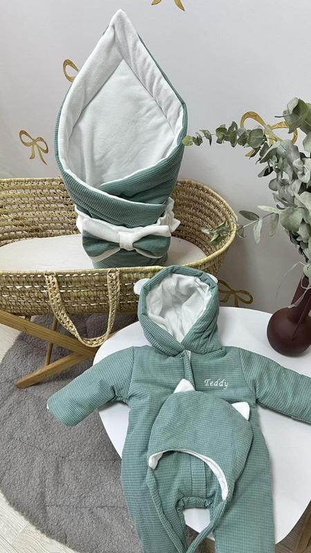 Практичний, гарний, стильний набір! У комплекті : Конверт - ковдра + комбінезон з шапулею Конверт ковдра : Тканина : вельвет Наповнювач : силікон Підкладка : фліс Розміри 0-3 та 3-6 місяців Конверт -ковдра Тканина: вельвет Наповнювач: силікон Підкладка: фліс Бант у комплекті Можно використовувати як на випуску так і для прогулянки Можливо окремо комбінезон або конверт-ковдра Ціна: Комбінезон 730грн Конверт-ковдра 630грн
