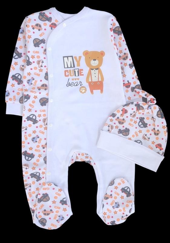 Чоловічок із шапочкою, чудово підійде на будь-який сезон. Має асиметричну застібку - кнопки, по усій довжині, зручний при переодяганні малюка. Виготовлений із натуральної тканини - інтерлок. Шви внутрішні. Ручки відкриті, ніжки закриті. Малюку в такому чоловічку буде комфортно, як в маминих обіймах.
