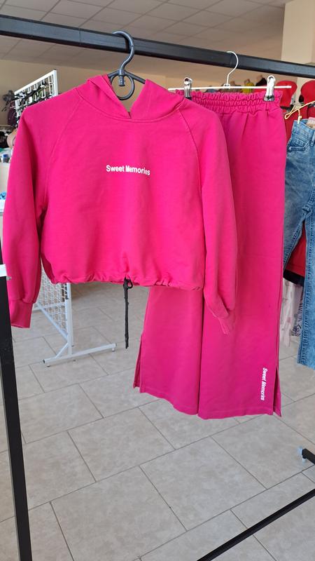 костюм на дівчинку.Кофтинка укорочена.Штани широкі з високою посадкою.Якість супер.Після донечки.Не кошлатиться.Стильний яскравй.Зріст 134.6-9 років.