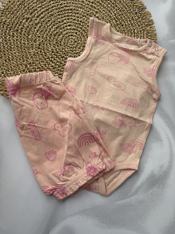 Чудовий літній набір для маленької дівчинки, розмір 68. Складається з ніжної боді-маєчки та легких шортиків – ідеальний комплект для спекотних днів.
