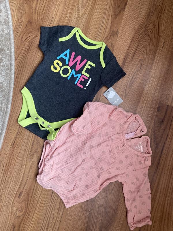 Обидва боді на зріст 62 см Primark новий з картонною біркою,рожевий від дорогого бренду Манор, стан ідеальний. Муслін Ціна за два вказана.