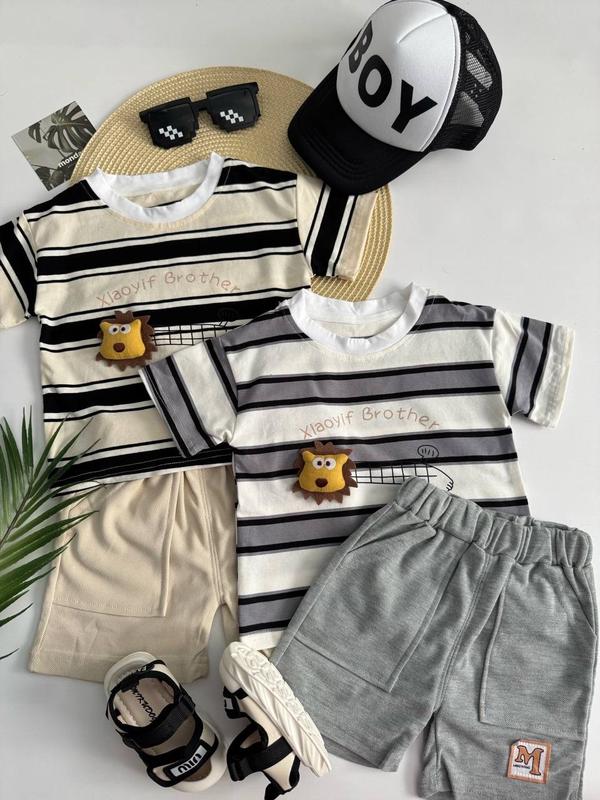 Матеріал: 100% бавовна Заміри: р.80 - футболка: довжина 32 см, ширина 31 см; шорти: довжина 25 см, пояс 18 см, стегна 27 см р.90 - футболка: довжина 34 см, ширина 32 см; шорти: довжина 27 см, пояс 18 см, стегна 29 см р.100 - футболка: довжина 37 см, ширина 33 см; шорти: довжина 29 см, пояс 18 см, стегна 30 см р.110 - футболка: довжина 39 см, ширина 34 см; шорти: довжина 30 см, пояс 19 см, стегна 32 см р.120 - футболка: довжина 42 см, ширина 36 см; шорти: довжина 32 см, пояс 19 см, стегна 33 см