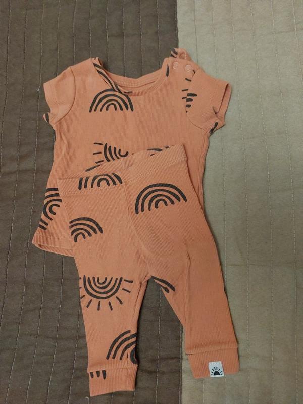 В идеальном состоянии. Единый нюанс сзади футболочки, крохотное пятнышко. Размер 62