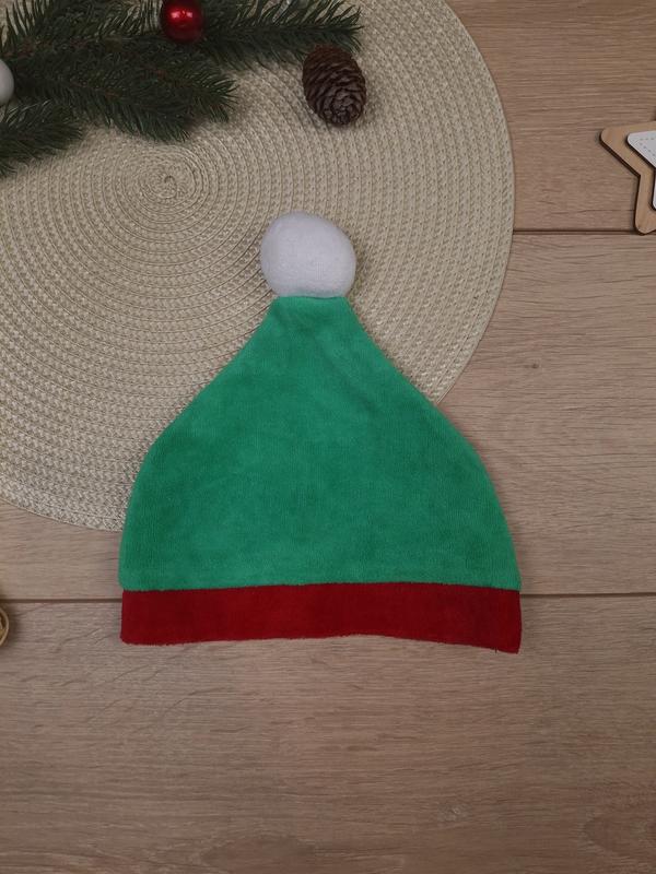Дитяча велюрова новорічна зелена шапочка 6-9 міс різдвяна шапка для хлопчика ельф