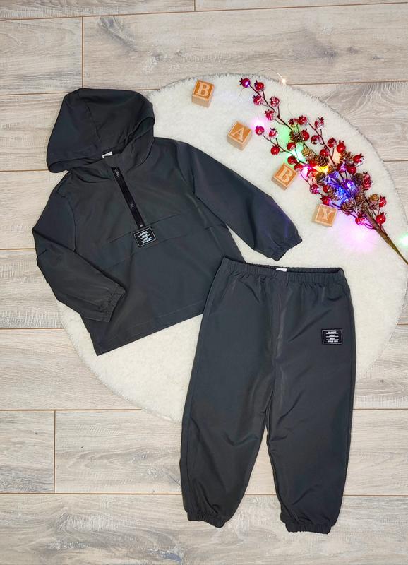 Стильний костюм для хлопчика 18-24 міс, 92 см в ідеальному стані, фактично новий, ніяких недоліків, графітовий колір, легкий, без утеплення.