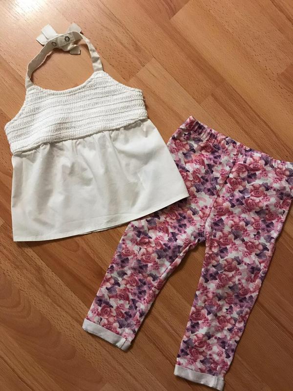 Комплект 12-18 міс Туничка old navy, довжина з лямочками (від шийки, по центру, де застібка) 34 см, довжина без шлеечек, від грудей -26,5 см, пог 24,5 см і ззаду резинка, тягнеться ще. Упоряд нової Штанці Matalan, довжина 41 см, крок 23 см, пот 22 див. Упоряд отл