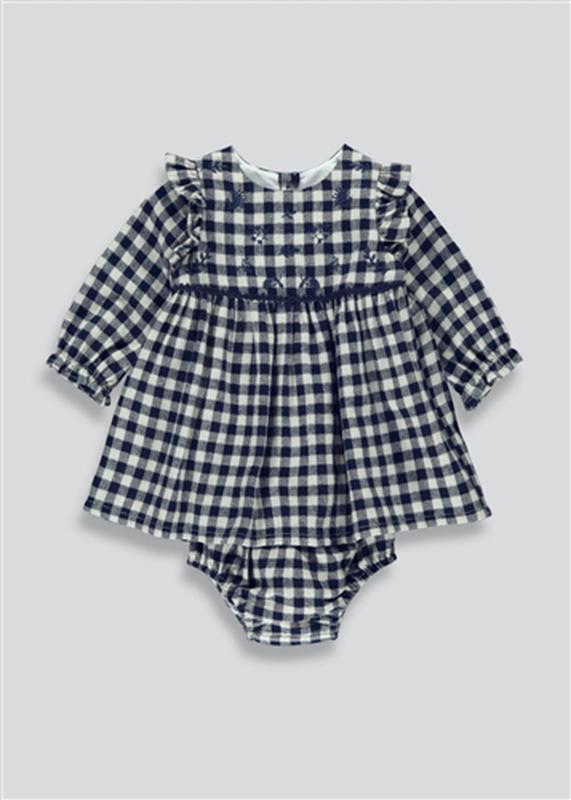 Набір для дівчинки MATALAN на 9-12 міс. на р.80. Влаштуйте свою малечу на всі її перші свята в це миле бавовняне плаття. У темно-синьому кольорі з класичним принтом у карту він доповнений витонченою квітковою вишивкою, що створює гарний завершальний штрих. Це плаття супроводжується відповідною парою трусиків, щоб вона закривала підгузок. Склад. 100% бавовна.