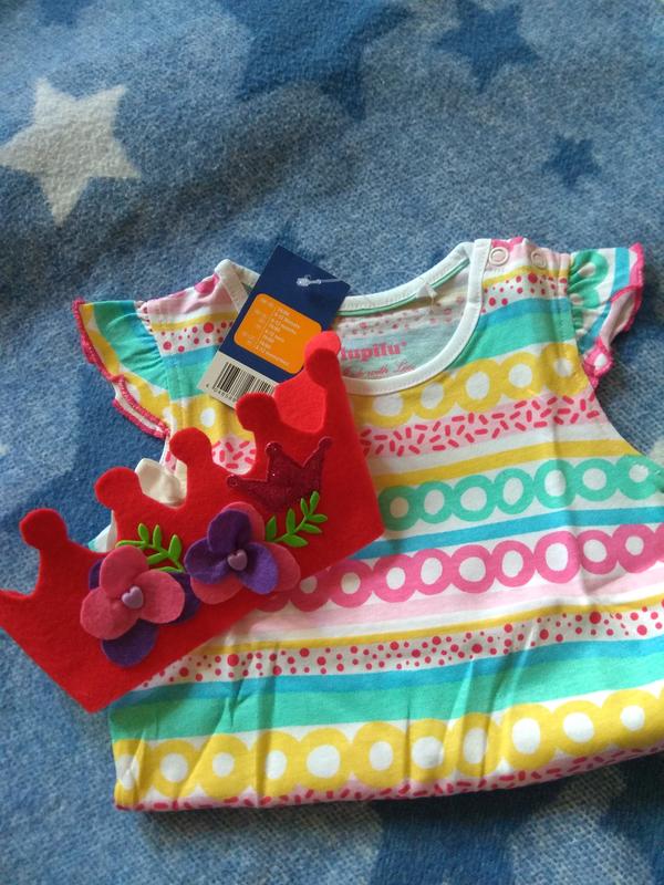 Супер набір для маленької красуні, футболочка і фетрова коронка ручної роботи)) На зріст 74-80, якість дуже хороша, розмір повномірний))