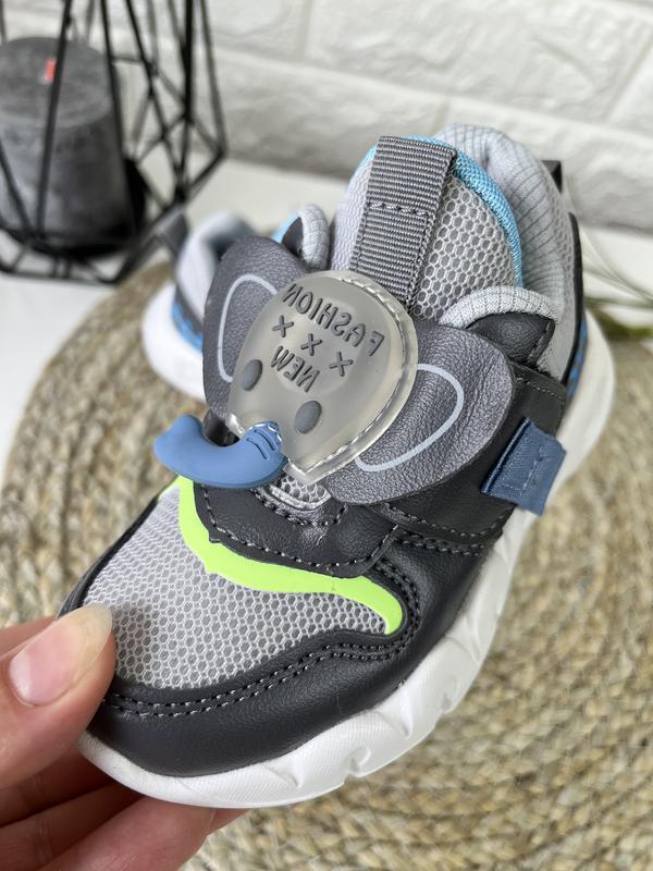 Дитячі сірі кросівки з однією липучкою та прикрасою у вигляді слоника на липучці – це стильне та зручне взуття для маленьких експлорерів. Виготовлені з якісних матеріалів вони забезпечують комфорт та оптимальну підтримку ніжок під час активних ігор та прогулянок. Дизайн унікальний та привабливий – малюнок слоника на липучці робить кросівки особливими та привертає увагу. Це ідеальний вибір для маленьких модників, які бажають поєднувати стиль та зручність у своєму повсякденному житті. Вимірювання устілки 22 (14 см)