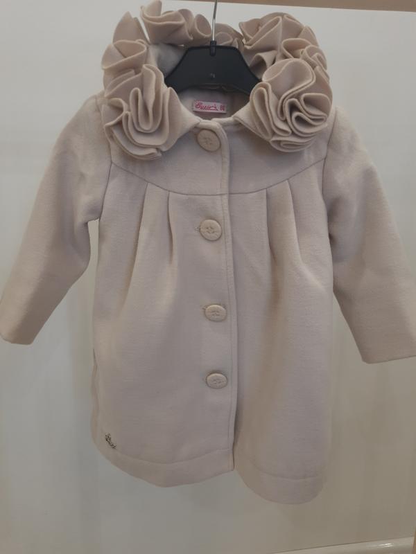 модное праздничное кашемировое пальто на маленькую девочку украшено у шеи пошив балахон длина пальто 47см длина рукава 35см от шеи подкладка атлас турецкий, приятный к телу состояние идеальное, новое бренд suzie...