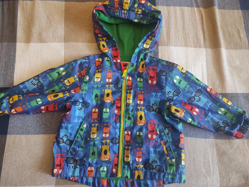 Курточка на мальчика или девочку, тонкая, внутри натуральная ткань, снаружи – водонепроницаемая. Сзади удлиненная, слегка расширенная к низу, есть карманы. Размер 74-80, но будет до 86 (не больше). Подробные замеры на фото.