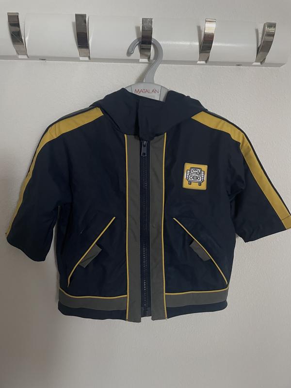 Дождьовик вітровка на малюка. Не тріснула, є трикотажна підкладка. Не лопнула, але є нюанс з внутрішньої сторони. По бірці на 6 місяців, але буде довше, орієнтуйтеся по замірах: довжина 33 см, ширина 32 см, рукав від капюшона 29 см.
