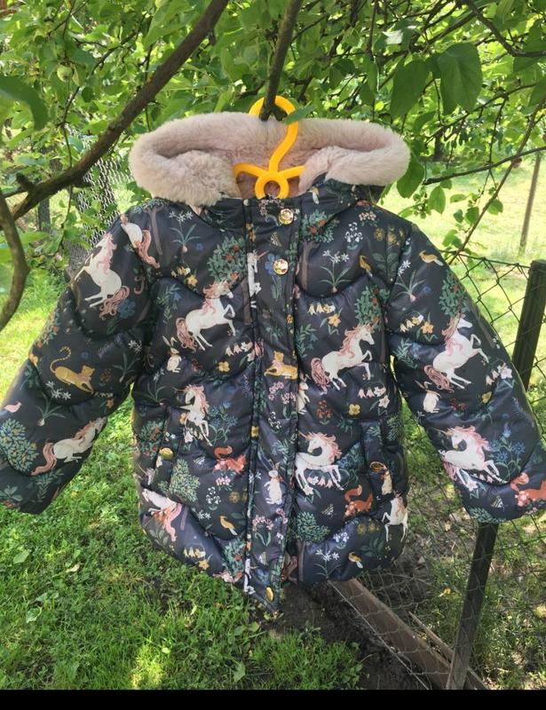 Курточка для маленьких красунь З єдинорогами бу, зима, 12-18 міс, 300