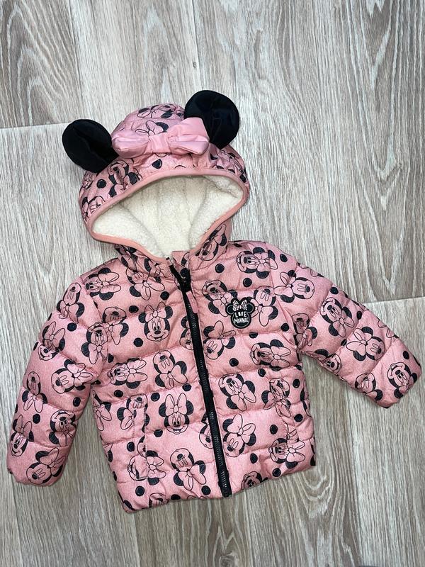 Тепла зимова Куртка Мінні Маус Тепла махрова підкладка Висока горловина Стан ідеальний 🏷️Disney 9-12 міс/80 Довжина 35. ПОГ 31. Рукав 29