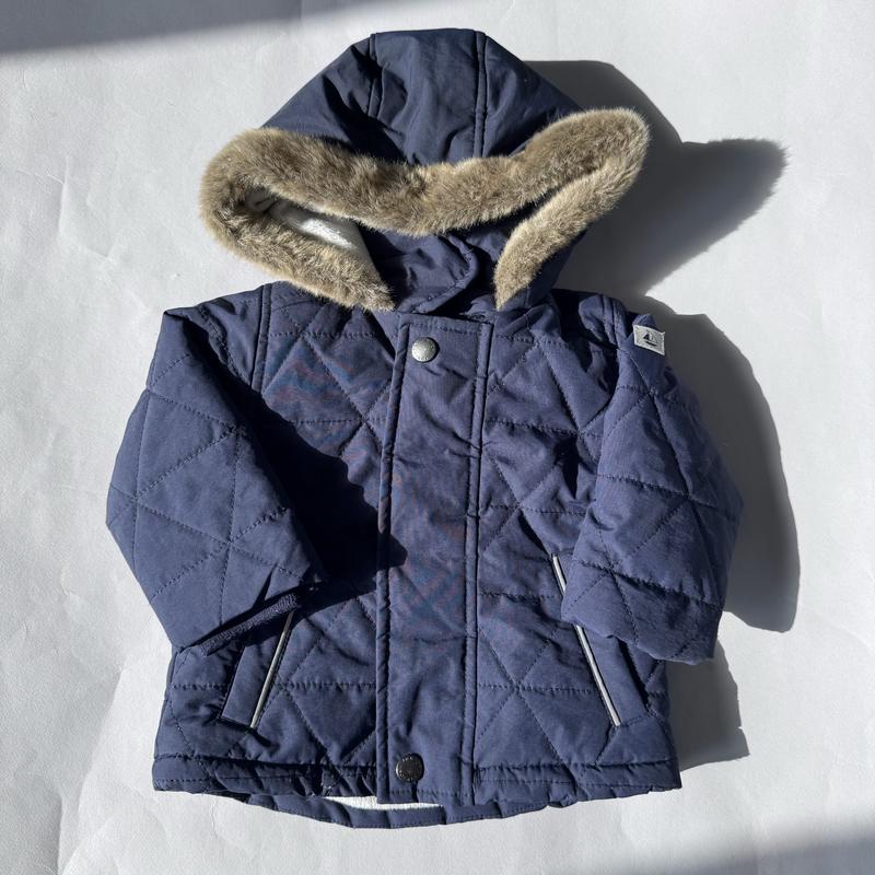 Куртка на хлопчика Junior J Зимова куртка на хлопчика, натуральне хутро. Розмір 6-9 місяців Довжина : 35 см. Ширина : 30 см. Рукав : 26 см. Плечі : 25 см. Стан : 10/10
