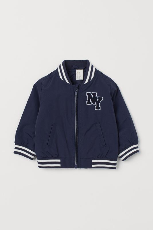 ✔Бейсбольная куртка бомбер H&M . Бейсбольная куртка из тканого материала с махровой аппликацией на груди. Воротник стойка, молния спереди с защитой подбородка и ложные передние карманы. Полосатая резинка на воротнике, манжетах и подоле. На подкладке. ✔Состав: На фото ✔ Цена ♥179 грн♥ ✔ Состояние - ИДЕАЛЬНОЕ ✔Размер 9-12 мес (74-80 см) длина по спине 36 см, ширина ―32 см, рукав от плеча 29 см.