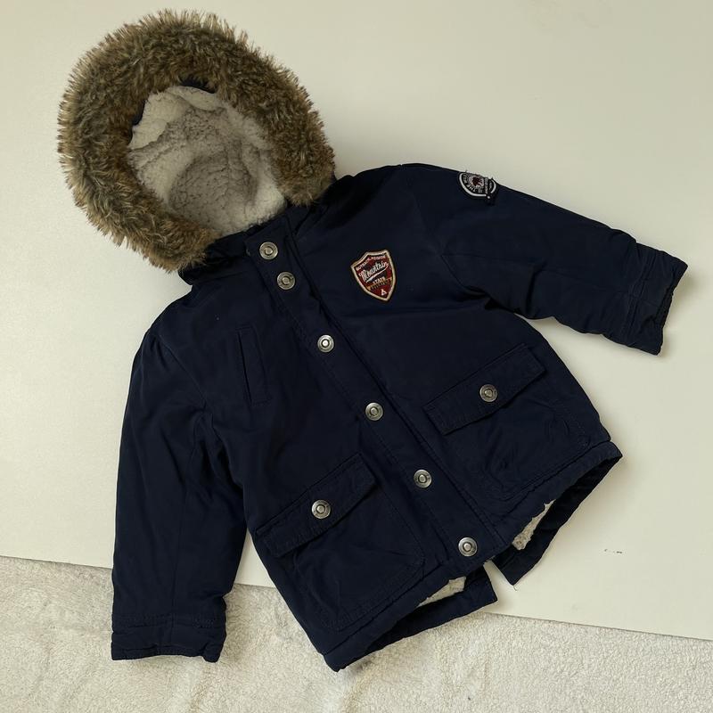 Парка f&f 18-24 місяці, тепла, ми носили зимою, зручна, гарний пух на капюшоні який не збивається. Рукав від плеча 30см. Довжина 41 см. Ширина під рукавами 36см.